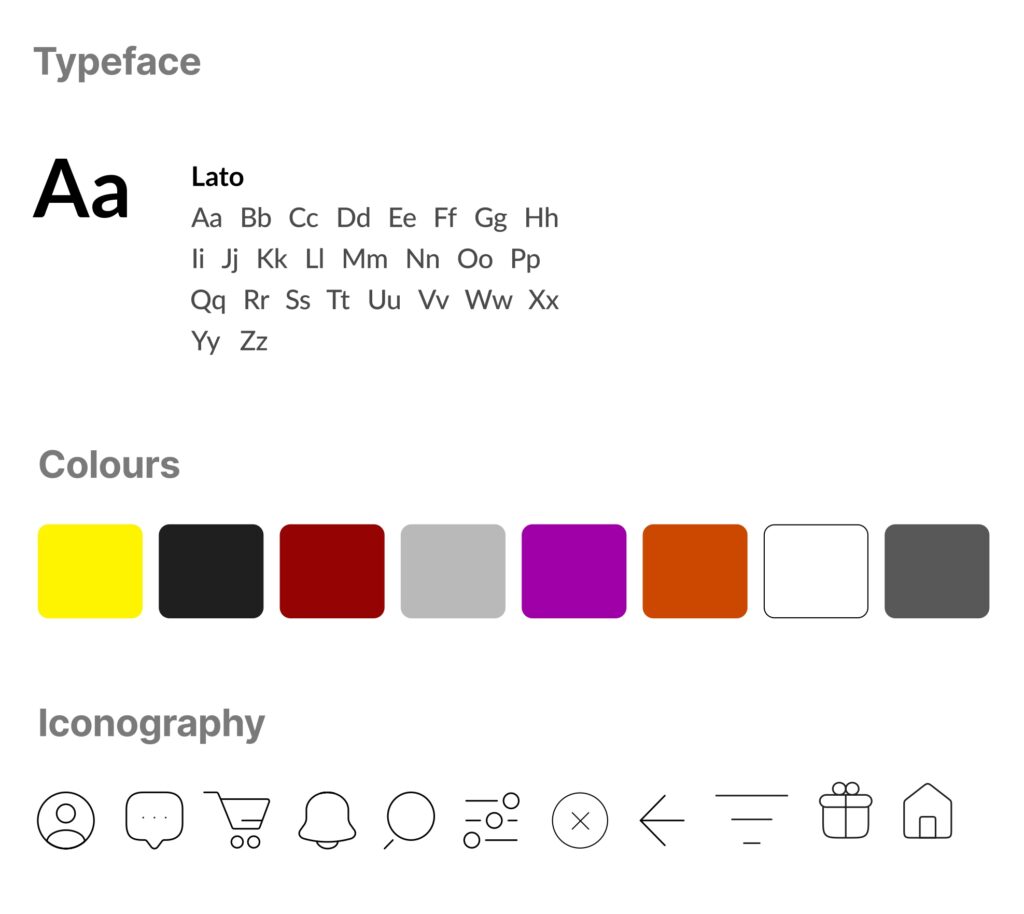 The style guide's visual identity is centred around the warm colours of red and beige in relation to alerts and a sense of home. The colour scheme creates a harmonious and simple experience.