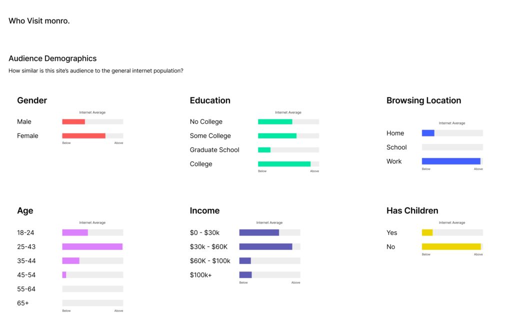 The analytics from Alexa also provided in-depth data which helped create the new female persona to add to the desired male persona. Alexa added a plethora of great data to input to our female persona. The age range for the main female users is twenty-five to thirty-four, earning from the thirty to sixty thousand range a year. She has higher education which means she gets well informed on her decisions.